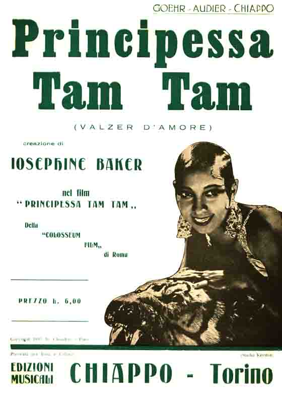 3 - Principessa Tam Tam : (love waltz) / [Walter] Goehr, [Henry] Audier, [Enrico] Chiappo ; created by Josephine Baker for the film Principessa Tam Tam by Colosseum Film of Rome. - Turin : Edizioni Musicali Chiappo, 1935. - 1 score (2 p.) ; 35 cm. ((From the film Princesse Tam-Tam, Edmond T. Gréville, 1935, inspired by Pygmalion by Georg Bernard Shaw.