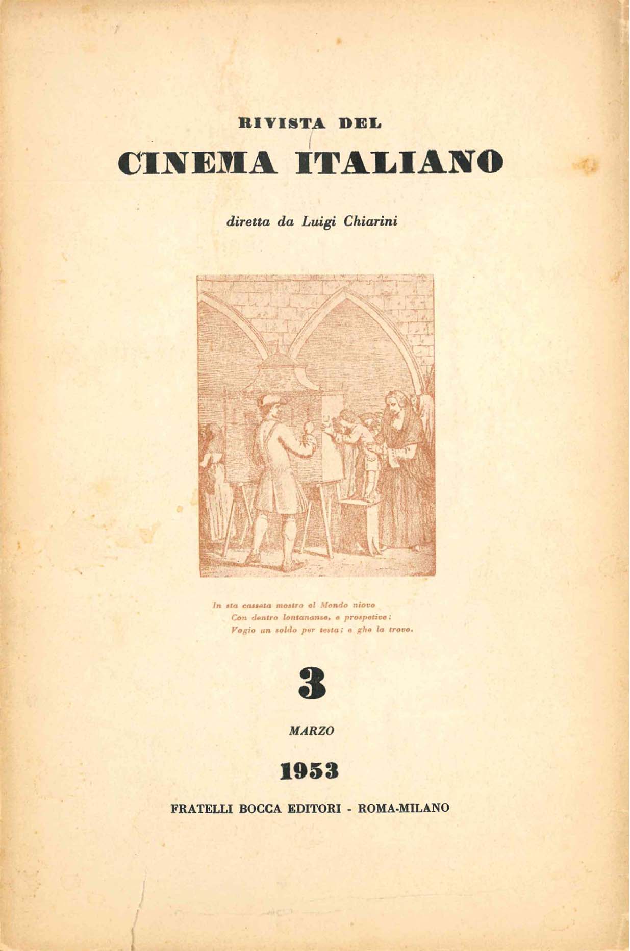 RIVISTA DEL CINEMA ITALIANO (1952-1955) SHARE Luogo: MilanoPosseduto 1(1952)-4(1955), In corso di digitalizzazione. 1952: n. 1 n. 2 1953: n. 1-2 n. 3 n. 4-5 n. 6 n. 7 n. 8 n. 9 n. 10-11 n. 12 1954: n. 1 n. 2 n. 3 n. 4 n. 5-6 n. 7 n. 8-9 n. 10 n. 11-12